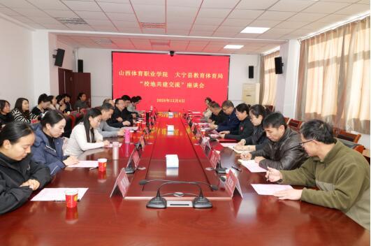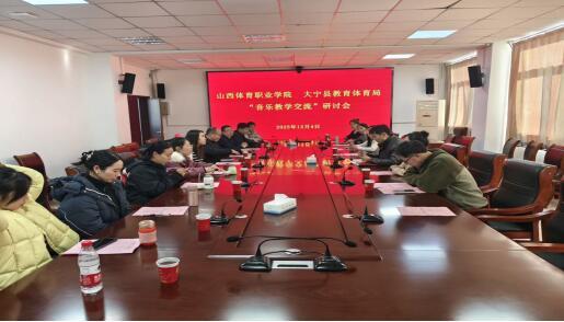 为深入贯彻乡村振兴战略部署,深化校地合作帮扶机制,充分发挥高校教育资源优势,助力提升基层教育教学质量,12月4日,山西体育职业学院与大宁县教育体育局校地共建交流系列活动在学院成功举办。学院党委副书记、院长王志勇,党委副书记张文梅、组织人事部部长韩锦涛出席活动,大宁县教育体育局基础教育股股长景建生带领17名中小学音乐、思政教师代表一行参与交流,共商教育协同发展大计。