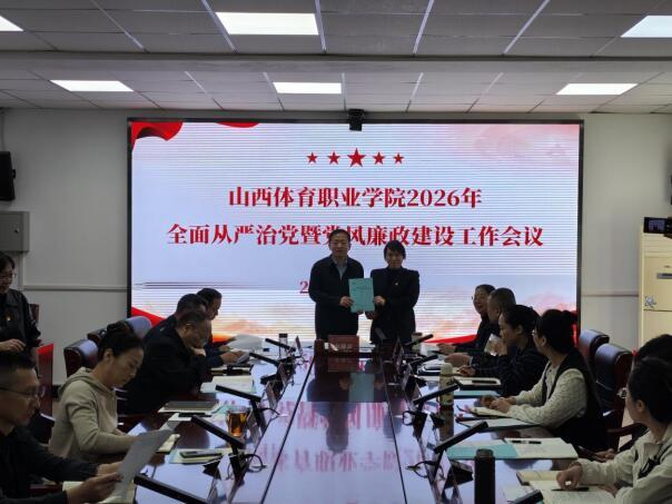 会上,运动训练二系党总支书记、资产管理部负责人分别代表基层党组织和部门向党委书记甘降雷提交《山西体育职业学院2026年党风廉政建设责任书》。