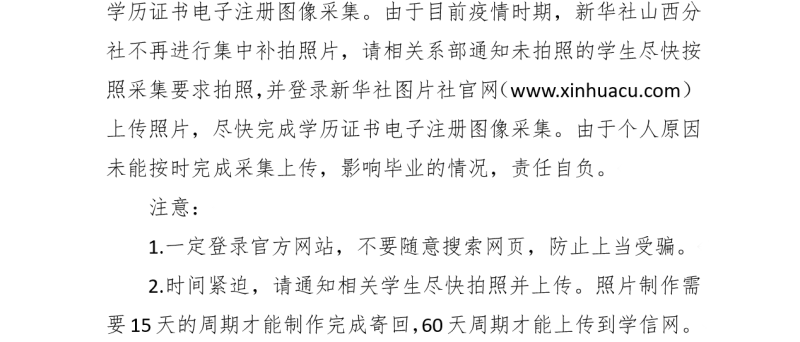 关于2020届毕业生学历证书 电子注册图像采集补拍照片的通知