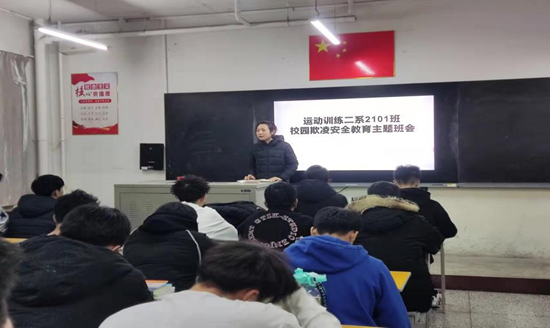 为保证活动效果,学生处强化领导,认真组织。12月3日,学生管理处召开了“严肃校风校纪,打造优良校风”班主任专项工作会议,传达学习了《山西体育职业学院防范校园欺凌实施方案》精神,要求各班级班主任高度重视、认真组织、扎实开展。丰富载体、效果明显。学生管理处结合工作实际,开展了一系列活动:一是开展校园欺凌主题班会及情况摸排。按照文件要求教学系及时成立教学系专项工作领导小组,对校园欺凌问题展开宣讲,以主题班会的形式让同学们认识到校园欺凌的危害性,从我做起,自觉抵制校园欺凌。二是开展公寓安全专项检查。严格检查宿舍内情况,防止打架斗殴,抽烟酗酒,使用大功率电器等违规违纪情况出现。三是开展校园文明督导。为了保障学校正常的教学秩序,维护学校良好的育人环境,切实做好校园安全工作。学生管理处组织校园文明督导队,巡查校园内违规违纪情况。严抓疫情封校期间翻墙出校的情况,做好疫情防控工作。
