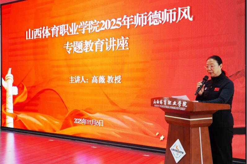 为深入阐释教育家精神的核心要义,引导教育工作者涵养“大先生”素养,2025年11月6日,山西体育职业学院举办了“弘扬教育家精神,做新时代德才兼备的‘大先生’”为主题的师德师风专题教育讲座。会议由院党委副书记张文梅主持,学院全体教职工参加。