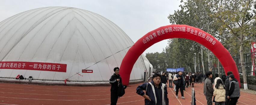 为做好学院2026届毕业生就业工作,搭建用人单位选人用人和毕业生求职应聘平台,11月6日,学院在气膜馆举办主题为“汇聚体育力量 共筑职业梦想”2026届毕业生“宏志助航”项目校园招聘会。省教育厅学生处处长武振杰,学院党委书记甘降雷、副院长王玉斌和教务部、各系部的负责同志到招聘会现场,与用人单位沟通交流,详细了解单位需求、用人标准、听取对学院人才培养工作的意见和建议。