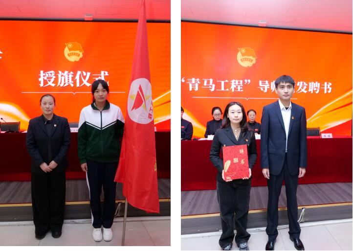 授旗环节,马克思主义学院负责人闫昱静郑重将“青马工程”班旗授予学员代表。随后,院团委为“青马工程”导师代表颁发聘书。最后,全体学员高举右拳庄严宣誓,铿锵誓言彰显出新时代青年马克思主义者矢志不渝的初心与勇毅前行的担当。