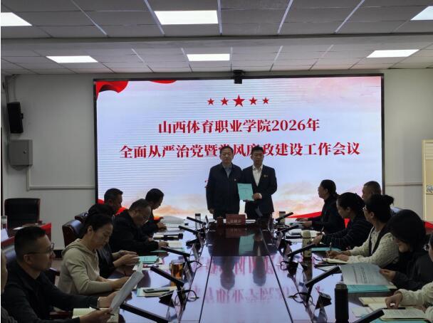 会上,运动训练二系党总支书记、资产管理部负责人分别代表基层党组织和部门向党委书记甘降雷提交《山西体育职业学院2026年党风廉政建设责任书》。