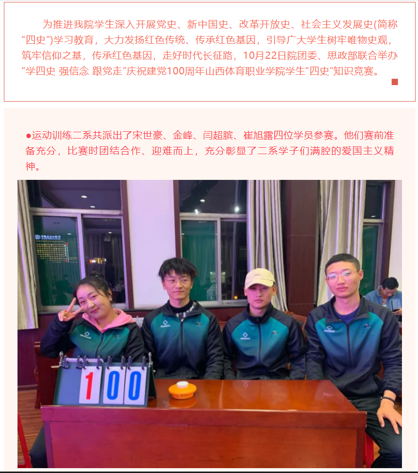 学四史 强信念 跟党走 运动训练二系学生在“四史”知识竞赛中荣获二等奖